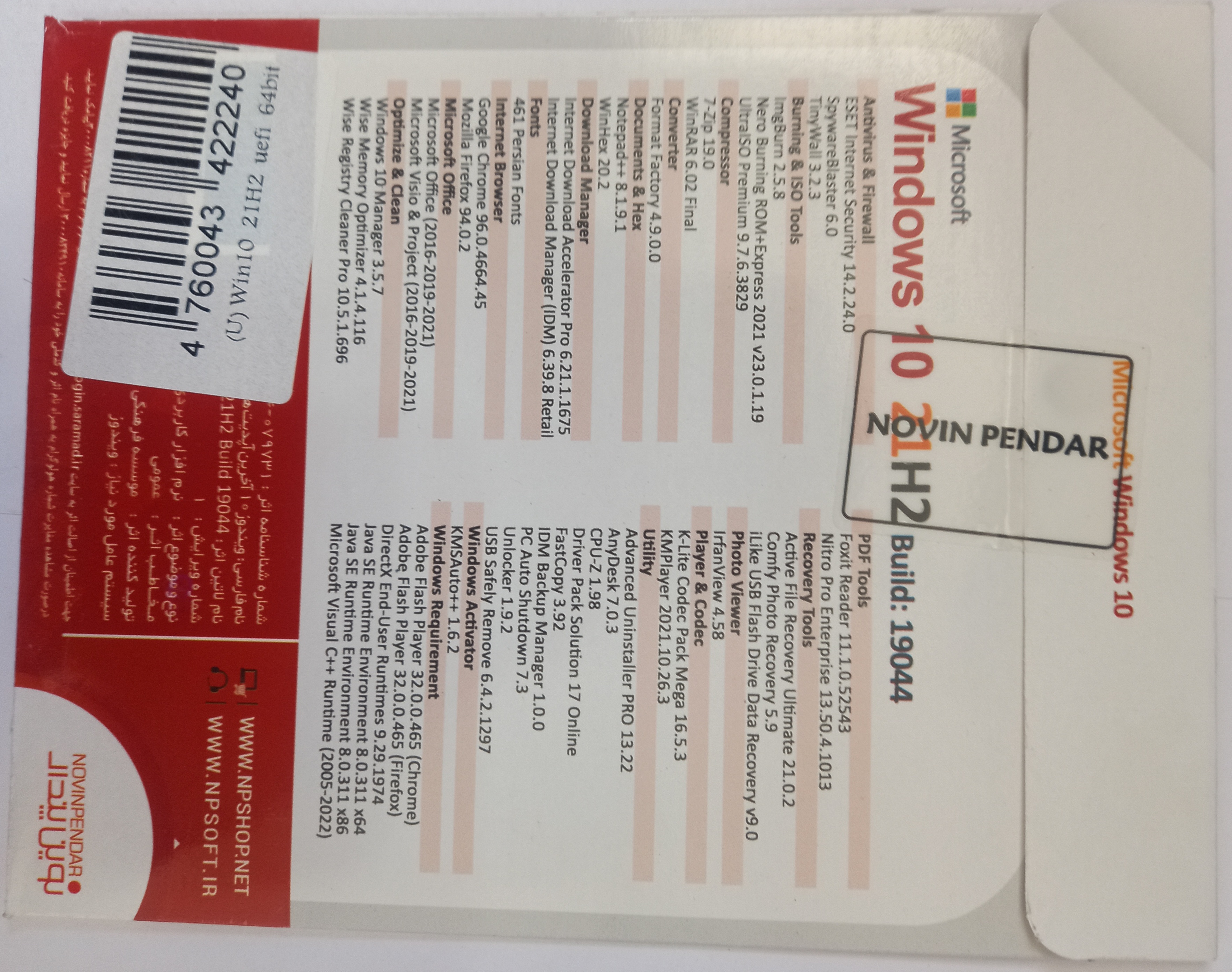 DVD9گیگ ویندوز10 نوین پندار 64 بیت نسخه2022 به همراه برنامه های کاربردی